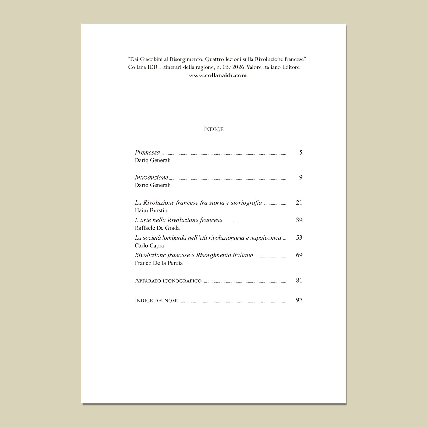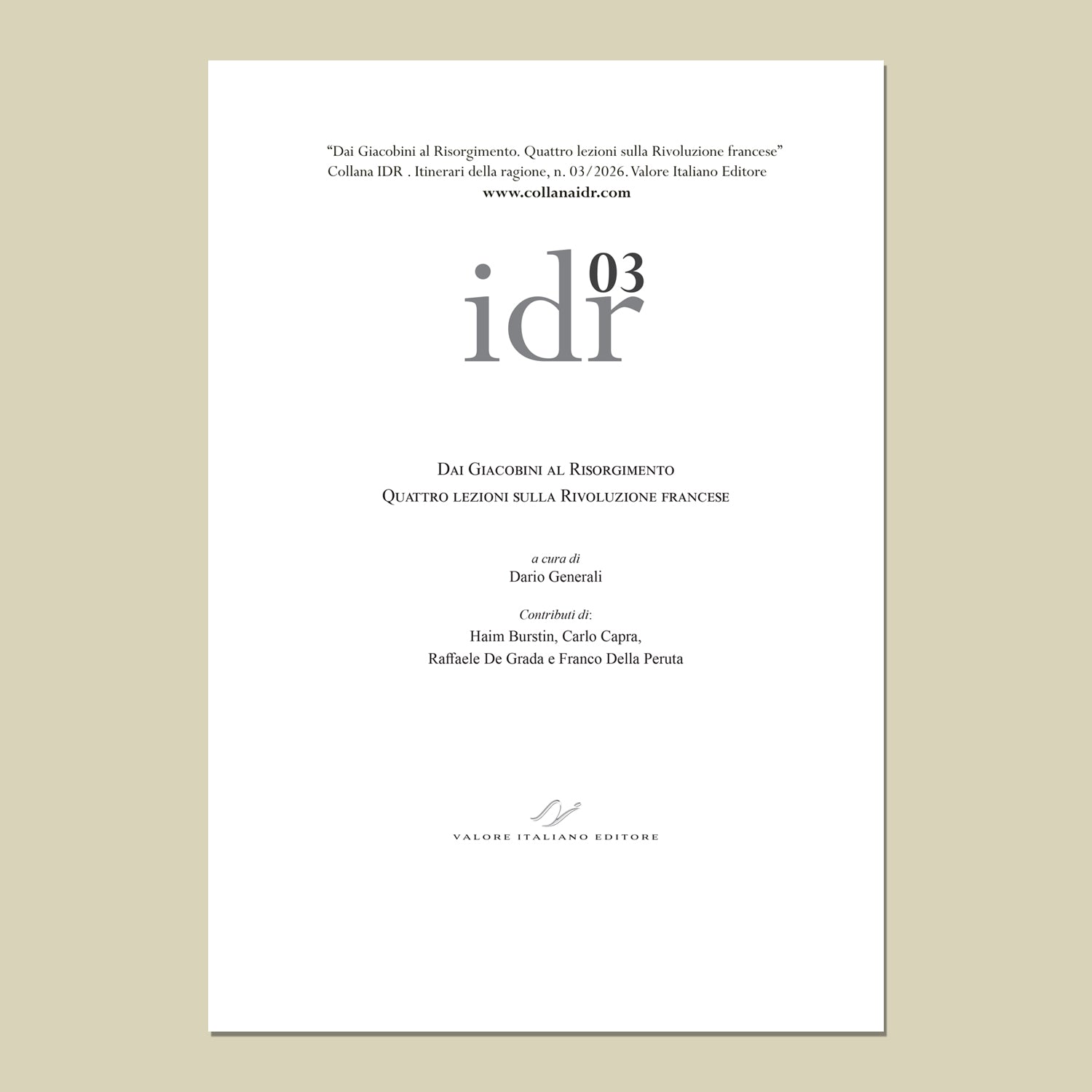 Generali, D. (a cura di) "Collana IDR "Itinerari della ragione", 03/2026. ISSN 3035-1731. Valore Italiano Editore, 2026. Sito ufficiale: www.collanaidr.com